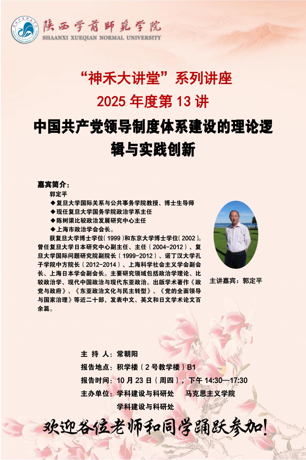 “神禾大讲堂”系列讲座2025年度第13讲:中国共产党领导制度体系建设的理论逻辑与实践创新