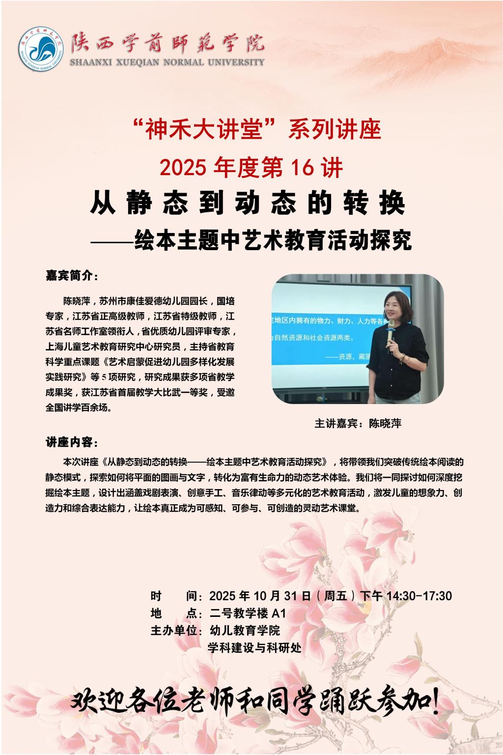 “神禾大讲堂”系列讲座2025年度第16讲:从静态到动态的转换——绘本主题中艺术教育活动探究