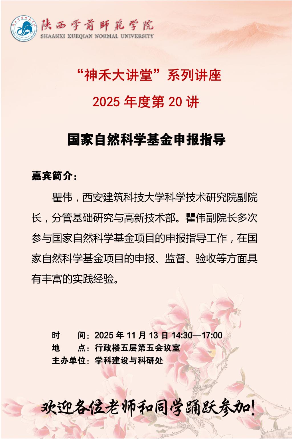 “神禾大讲堂”系列讲座2025年度第20讲:国家自然科学基金申报指导