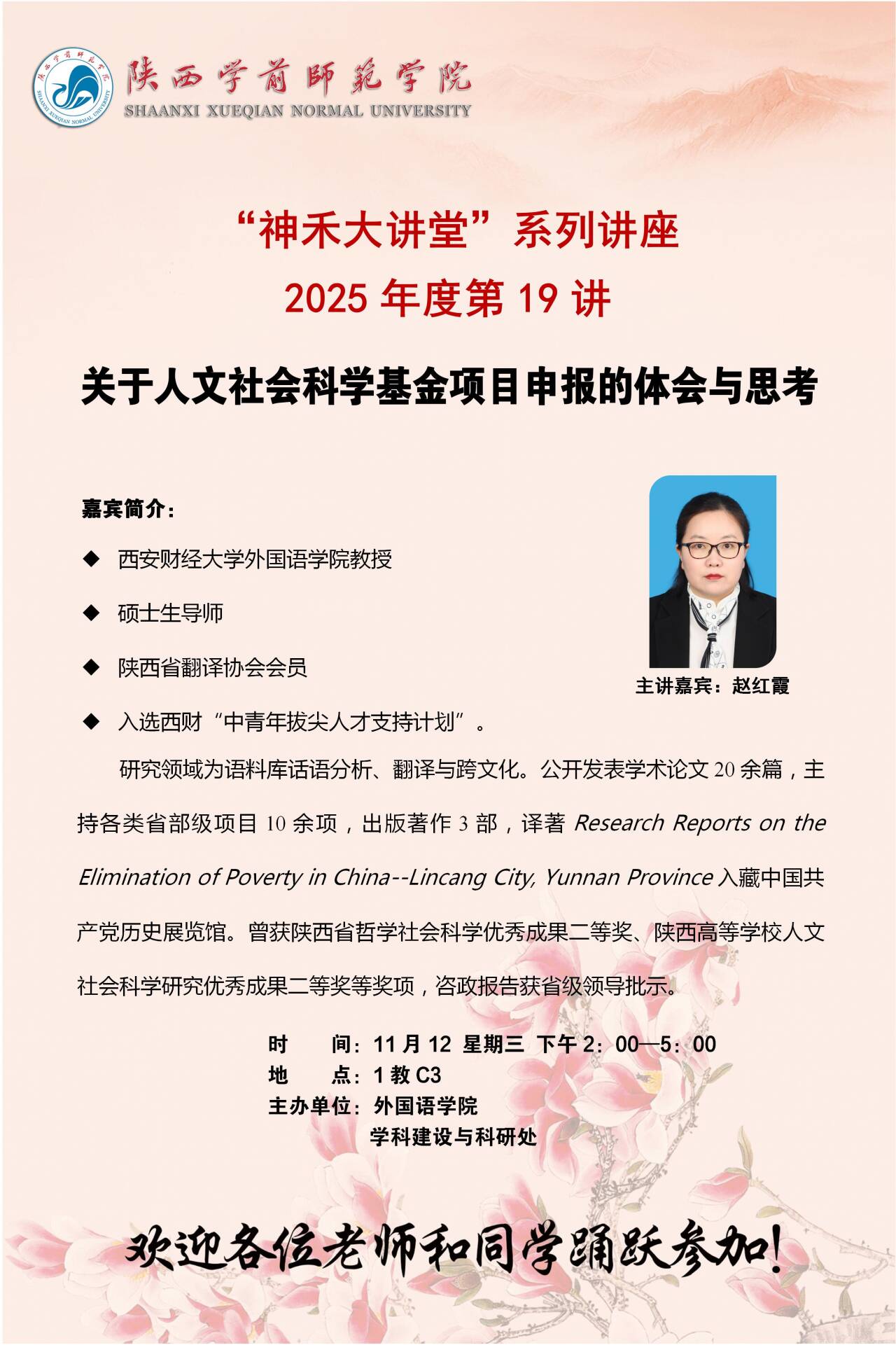 “神禾大讲堂”系列讲座2025年度第19讲:关于人文社会科学基金项目申报的体会与思考