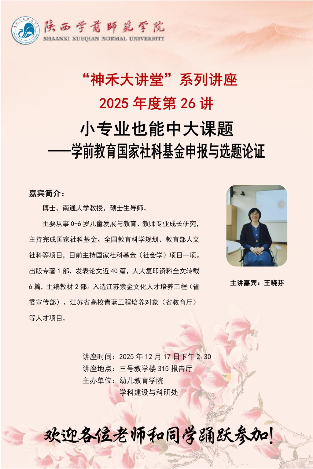 “神禾大讲堂”系列讲座2025年度第26讲:小专业也能中大课题——学前教育国家社科基金申报与选题论证